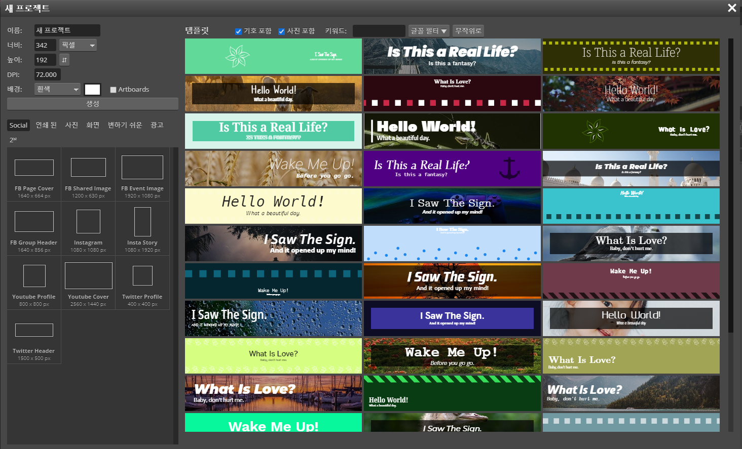 포토피아는 기본적으로 디자인된 샘플을 제공합니다.