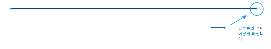 그러면 선의 마지막 부분에 굵은 색의 점이 작게 바뀝니다.