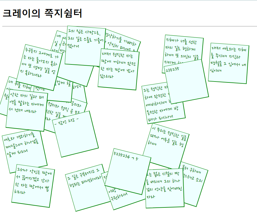 그러면 자연스럽게 추가된 쪽지를 불러와 화면에 보여주기 때문에 쪽지가 보여지겠지요.