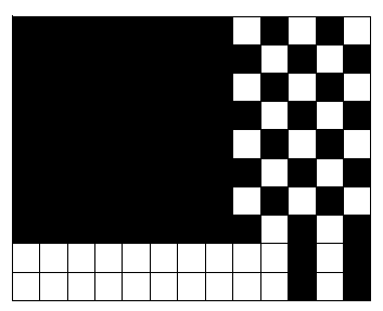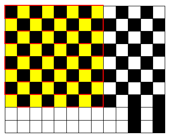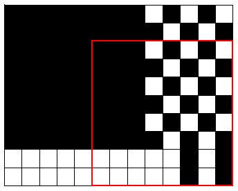 꽤 많은 면적이 체스판과 비슷해서 12칸만 칠하면 됩니다.