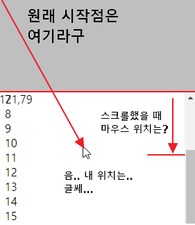 그런데 화면이 스크롤되었을 때 마우스 좌표는 2가지 계산 방법으로 분리가 됩니다.