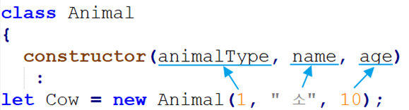 | let Cow = new Animal(1, " 소", 10); Cow.showInfo(); |
