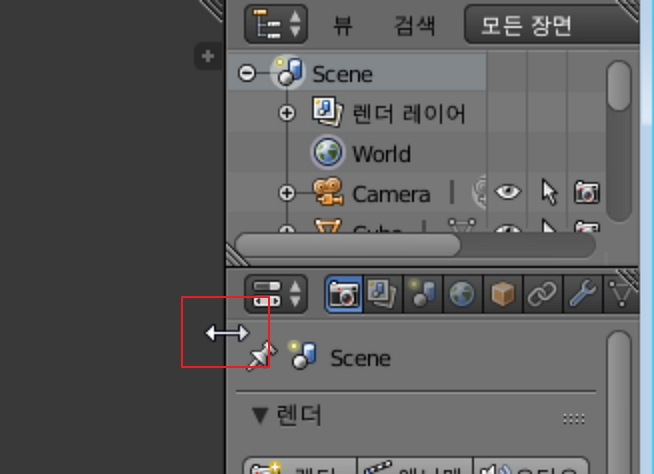 그런데 사실 블렌더를 맨 처음 켜면 이 기능이 보이지 않습니다.