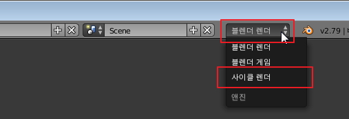 제일 먼저 고성능 렌더러인 사이클 렌더를 선택해 주세요.