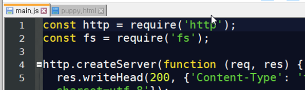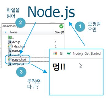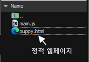 Node.js 가 puppy.html 파일의 내용을 읽어서 그대로 보여주기 때문이지요.