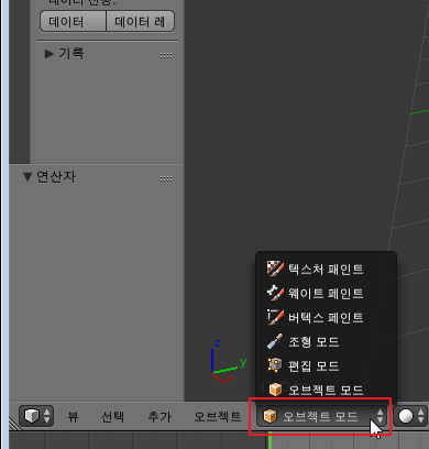 화면 아래 보시면, 오브젝트 모드라는 선택상자가 있는데요.