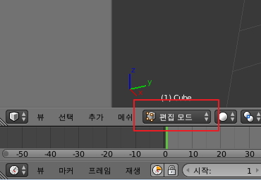 블렌더는 오브젝트 모드와 편집모드라는 모드를 가지고 있습니다.