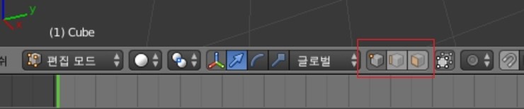 각 아이콘은 앞에서부터 점, 선, 면 편집모드입니다.