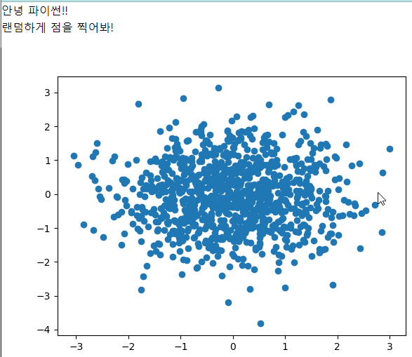 아래 예제는 파이썬의 그래프 기능을 이용하여 랜덤하게 그래프에 점을 찍어주는 소스입니다.
