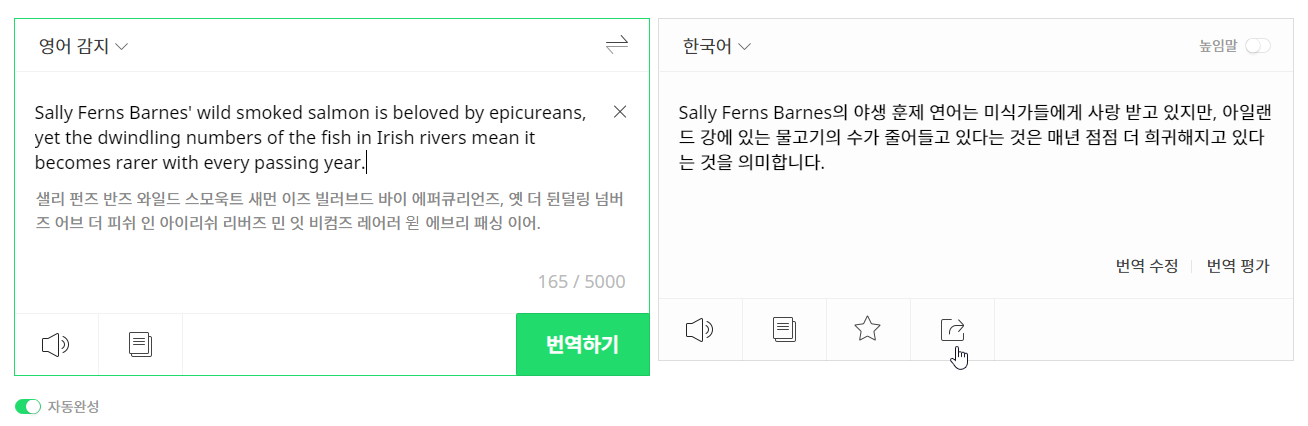 위 문장은 네이버에서 제공하는 샘플데이터이니 번역이 잘 되는 문장을 사용했다고 생각할 수도 있을것 같은데요.