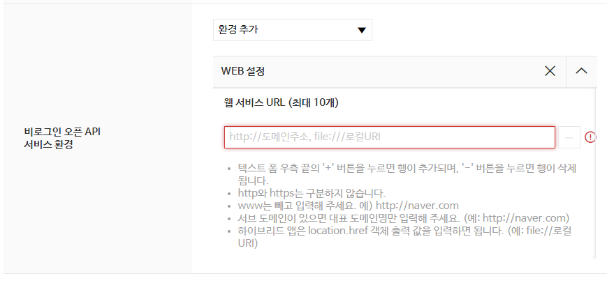 보통 홈페이지에서 네이버 API를 사용하는 경우 이렇게 본인 홈페이지 URL을 입력해야만