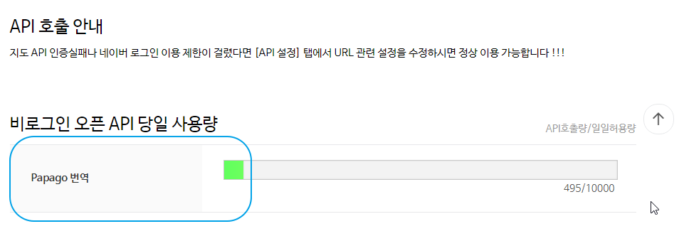 네이버 개발자 센터에서는 하루 사용된 API 분량을 쉽게 보는 기능을 제공하는데요.