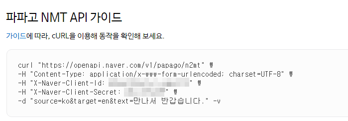 이 2가지가 있어야 파파고 API를 사용할 수 있습니다.