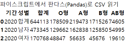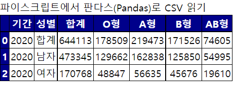 <h2>파이스크립트에서 판다스(Pandas)로 CSV 읽기</h1>
