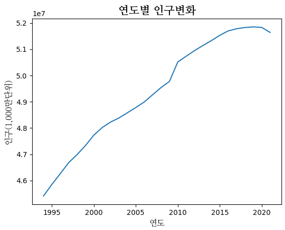 plt.title('연도별 인구변화', fontproperties=NanumGothicBold, fontsize=16);