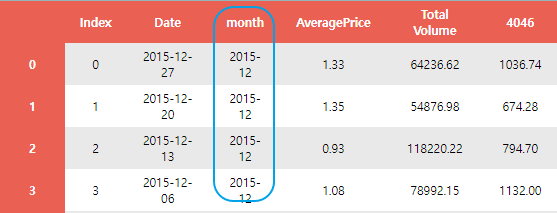 이 명령을 실행하고 표를 출력하면 표에 없었던 month 항목이 추가됩니다.
