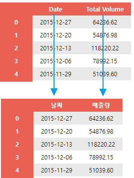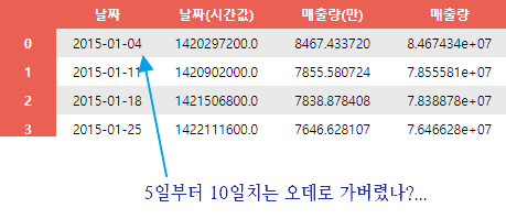 외부에서 읽어온 csv 파일을 데이터프레임으로 받아온 결과를 가지고,