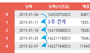 이번에는 이 주간 매출 데이터를 이용해서 가로방향으로 꺾은선 그래프를 그려보는 부분을 다룰텐데요.