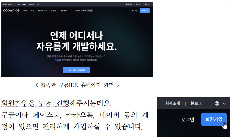 본문에 나오는 구름 IDE 개발 서버를 제공하는 구름IDE URL은 아래와 같습니다.
