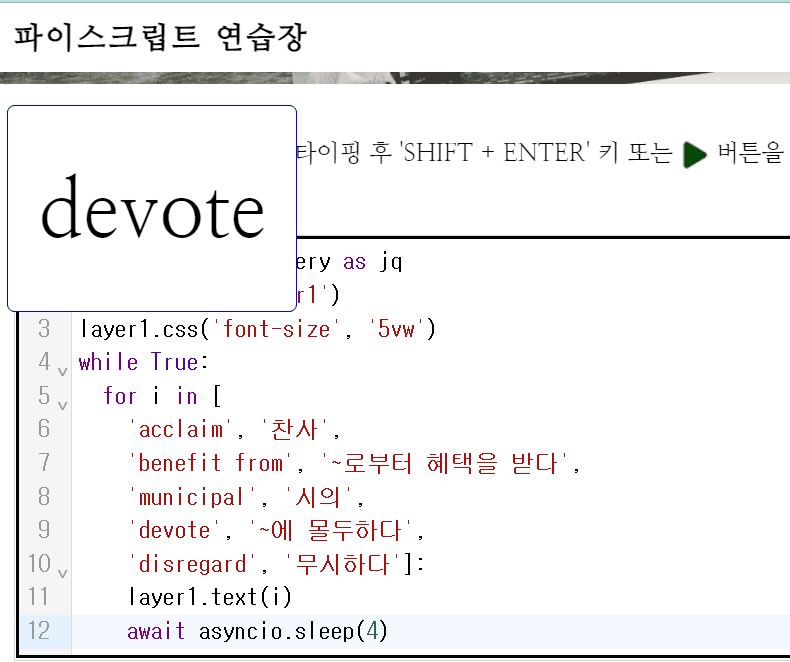 파이스크립트 메모장 ( http://dreamplan7.cafe24.com/py/ ) 에서 실행가능합니다.