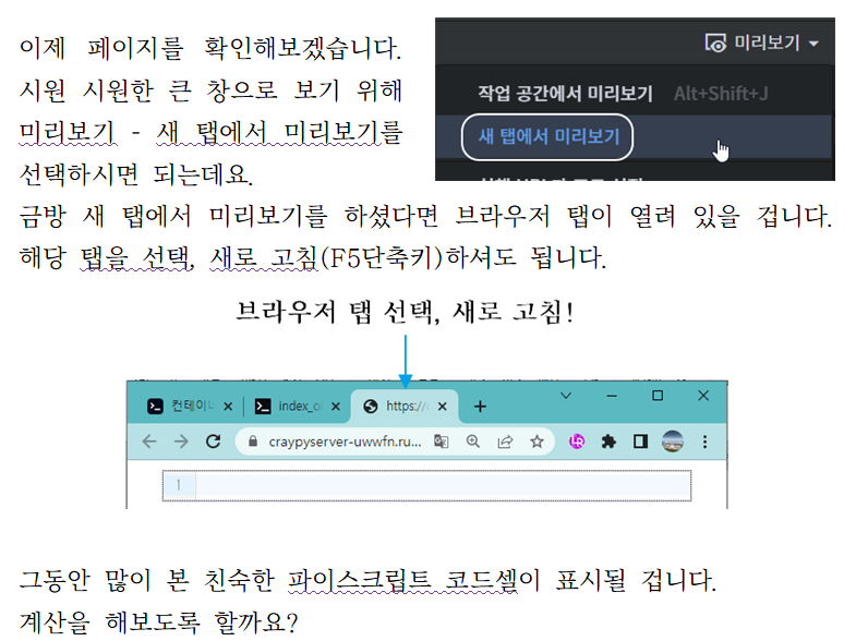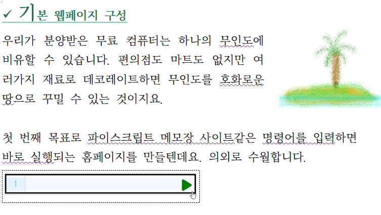 파이스크립트 서적을 준비중인데요. 본문 중 일부에 해당하는 내용입니다. 본문에 나오는 구름 IDE 개발 서버를 제공하는 구름IDE URL은 아래와 같습니다. 그러면 공짜 서버 얻으러 고고~ https://ide.