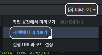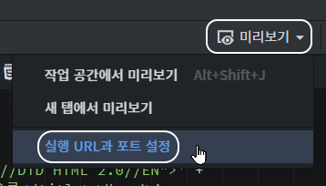 다른 포트로 적용된 소스를 그대로 사용하려면, 미리보기 - 실행 URL과 포트 설정 메뉴에서,