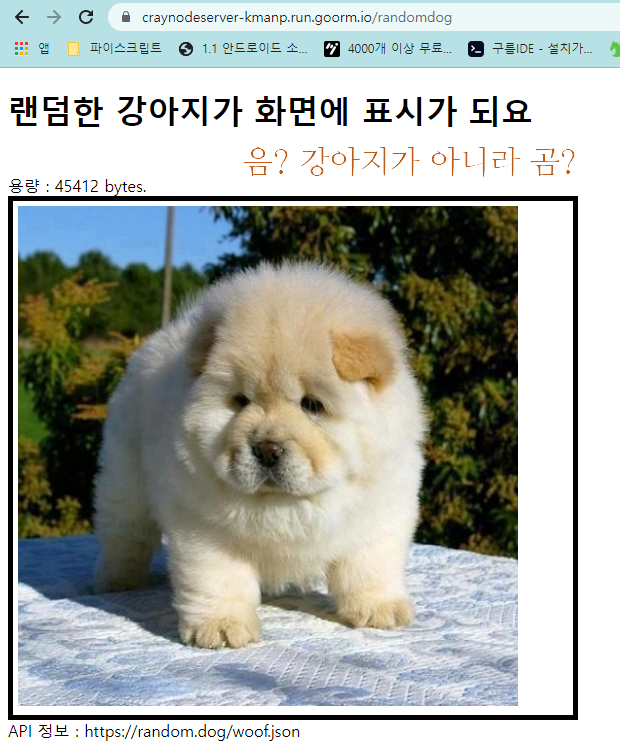 그리고 전에 다루었던 게시글의 랜덤강아지 API 코드를 적용해보았는데요.