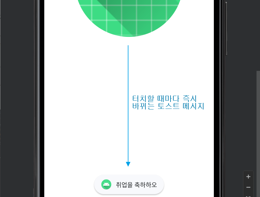 toast = Toast.makeText(getApplication(), "취업을 축하하오", Toast.LENGTH_SHORT);