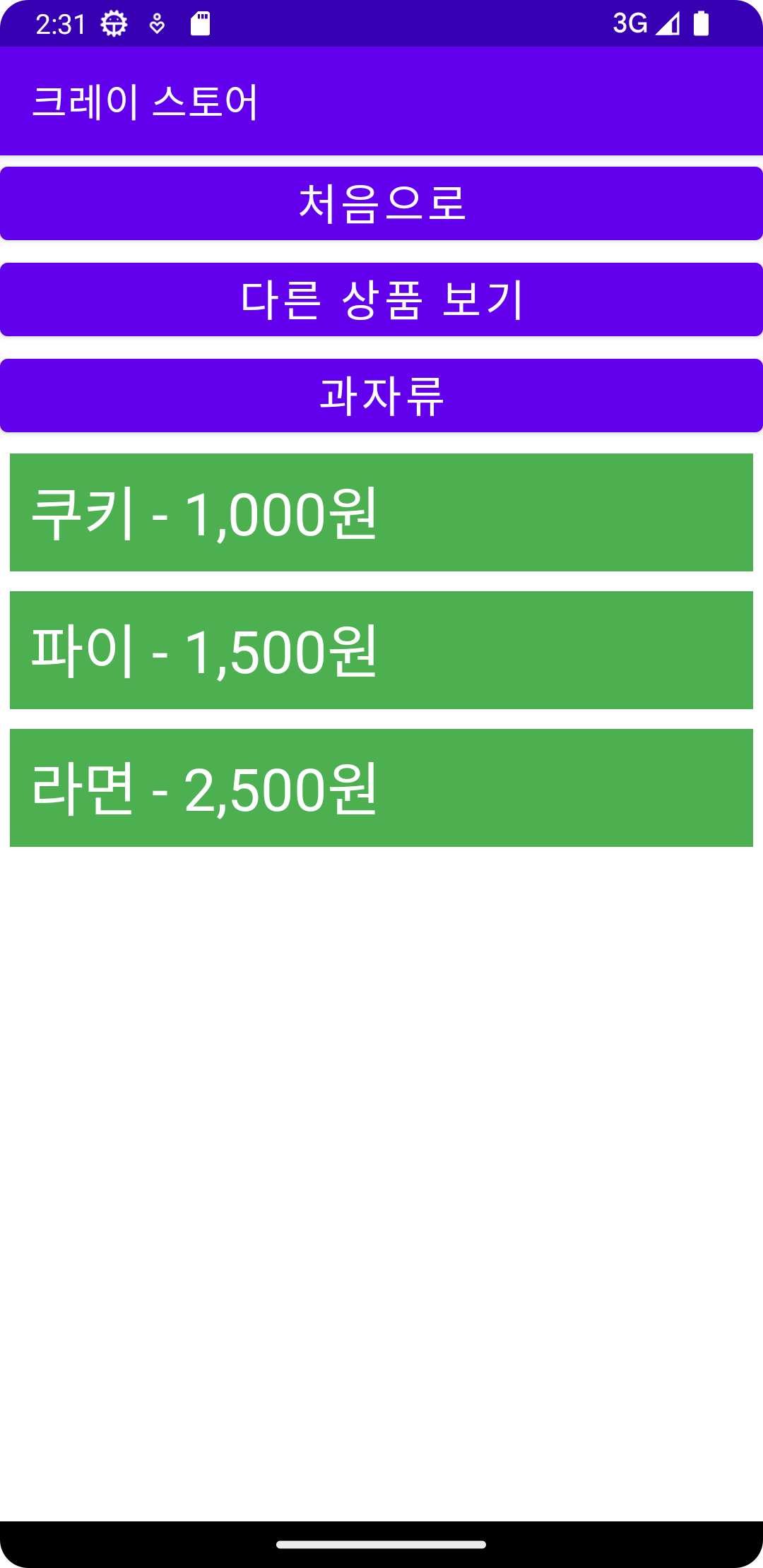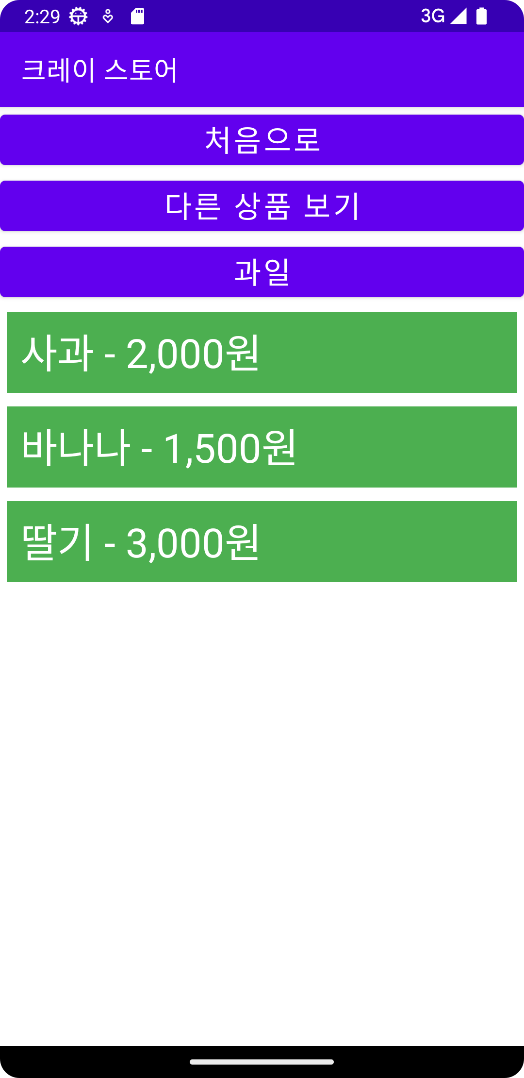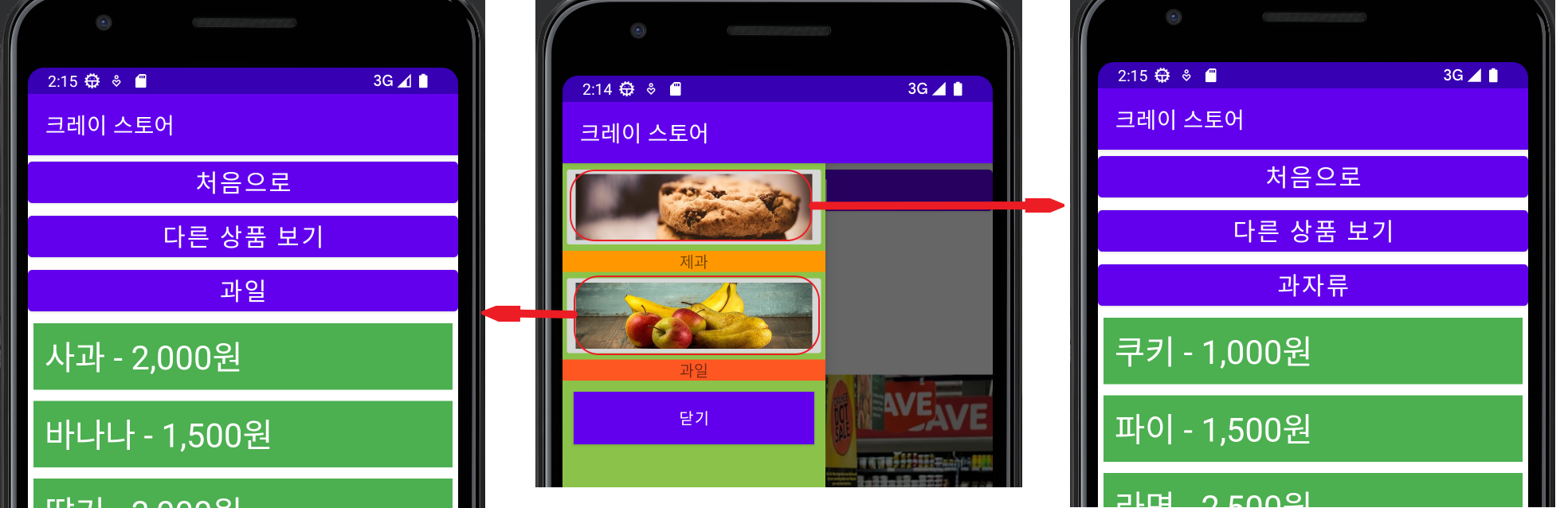 두 번째 버튼을 클릭하면 과일류 메뉴판으로 이동합니다.