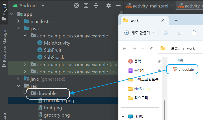 앞에서 언급한 홍드로이드님의 안드로이드 강좌를 보셨다면 리소스 입력을 어떻게 하는지 아실겁니다.
