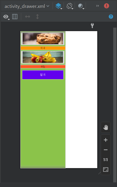우선 메뉴버튼을 Button 대신 ImageButton 으로 변경해보았는데요.