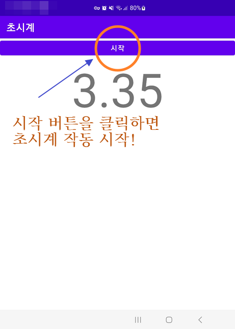 핸들러의 경우 토스트 메시지 대신 초시계의 진행초를 보여주도록 구현하였습니다.