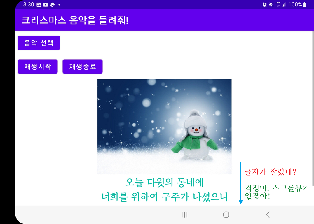 그래서 구글링 전법을 발휘, 방법을 알아내어 스크롤뷰(Scroll View)를 적용해보았습니다.