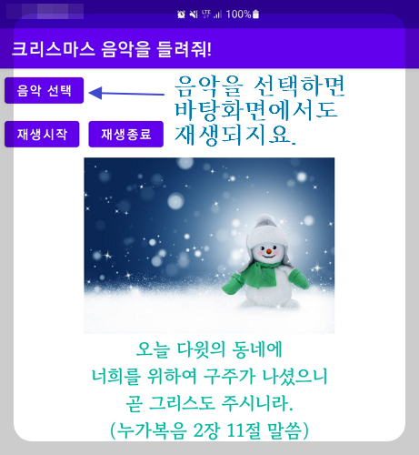 onStartCommand 메소드에서 파라미터를 받아 배경음악을 설정하고, 재생하였습니다.