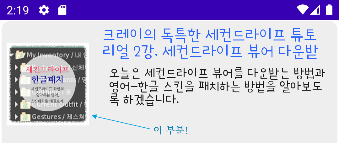 리스트뷰용 예제는 아니고, 이미지 뷰에 웹이미지 URL을 불러오는 예제인데,