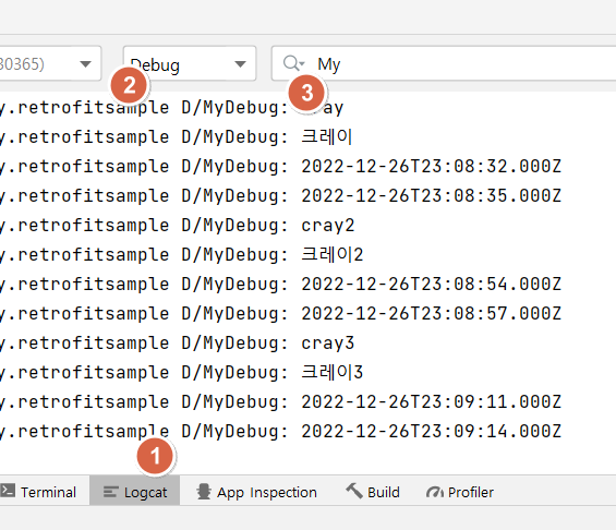 결과내역은 로그캣(Logcat) 창에만 표시됩니다.