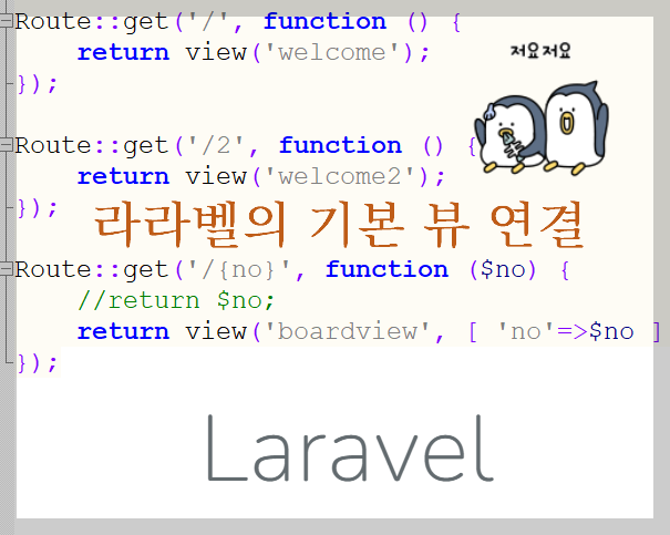 라라벨은 라우터가 마치 엄마처럼 모든 뷰를 자식같이 관리하게 되어 있습니다.