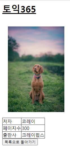 3) 뷰에 전달하되 책정보가 1권뿐이므로 배열로 전달하지 않고 직접 책의 정보만 전달합니다.