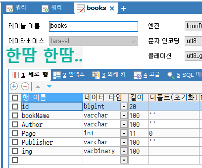 라라벨에서 소스코드를 이용하여 테이블을 구성하는 방법 대신,