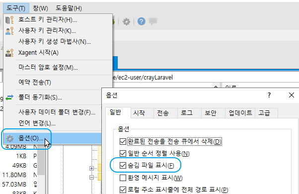 크레이는 SFTP 프로그램으로 평소에 XFTP 를 사용하는데 글쎼 숨김파일이 안 보이더라구요.