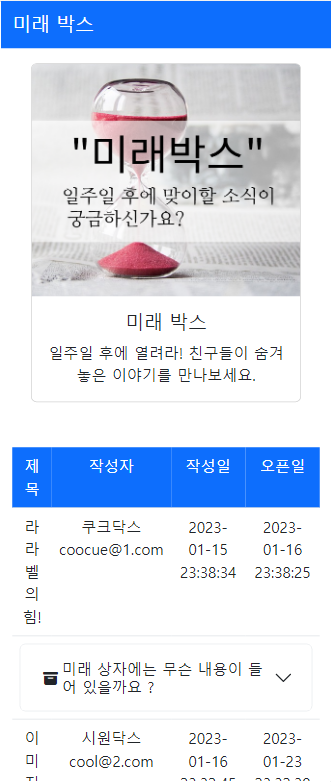 글 목록에서 미래상자 안내 문구부분을 선택하면, 날짜가 경과된 상자글은 아래와 같이 게시글이 노출되지만