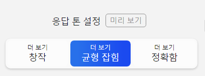 그런데 중간에 응답 톤이라는 3가지 옵션을 선택할 수가 있네요.