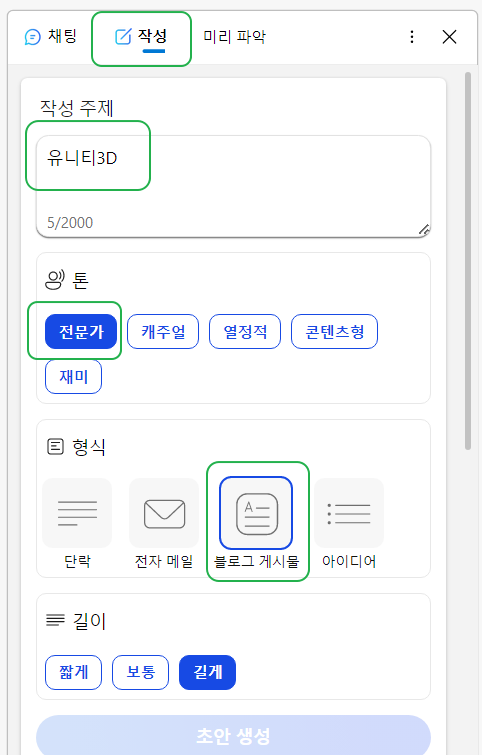 유니티3D에 대한 글을 전문가가 블로그 게시글 형태로 길게 써달라고 했더니