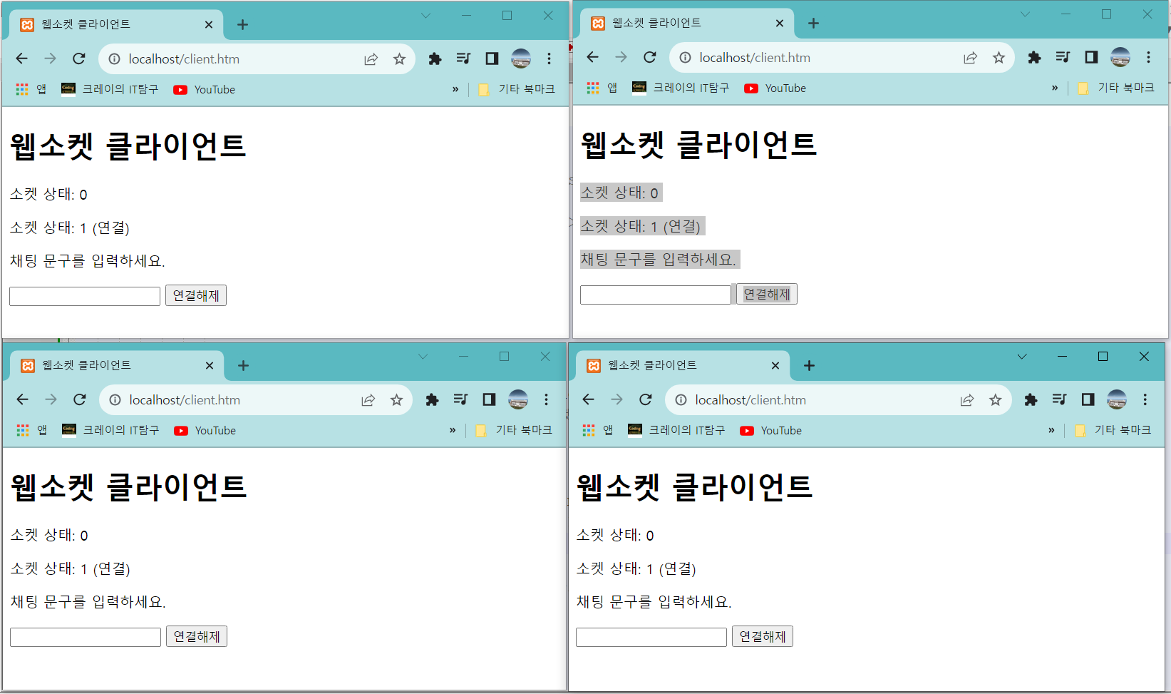 다른 웹브라우저들에도 메시지가 실시간 표시되는 걸 확인할 수 있습니다.