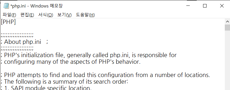그러면 메모장이 열리면서 PHP 설정 사항이 표시됩니다.