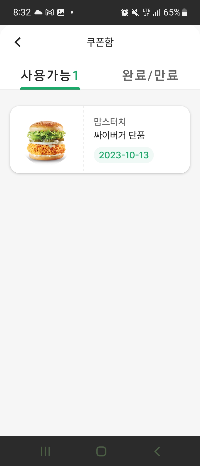 그 외 뽑기도 있는데 보상으로 맘스터치 버거도 받았습니다 ㅎ