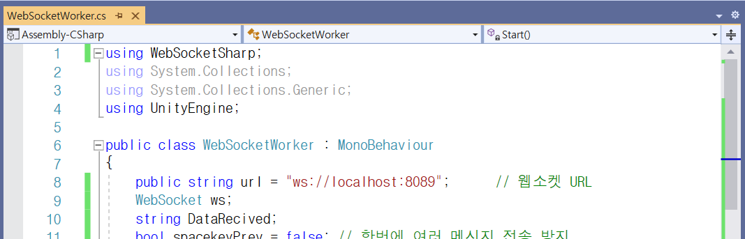 public string url = "ws://localhost:8089"; // 웹소켓 URL