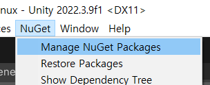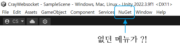 이제 패키지 매니저 창을 닫으면 화면 상단에 NuGet 메뉴가 추가된 것을 보실수 있습니다.
