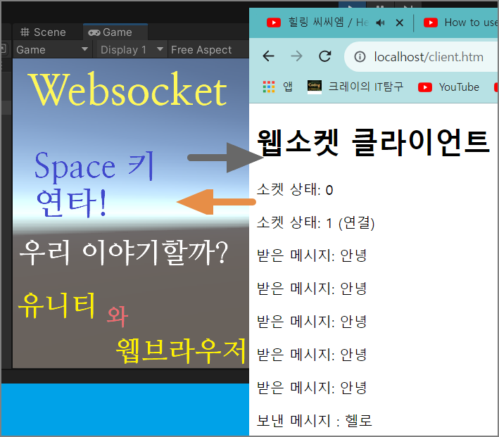 유니티에서 웹소켓을 처음 다루어 보았는데 생각외로 한번에 잘 되어 와우! 라는 탄성이 나왔습니다.