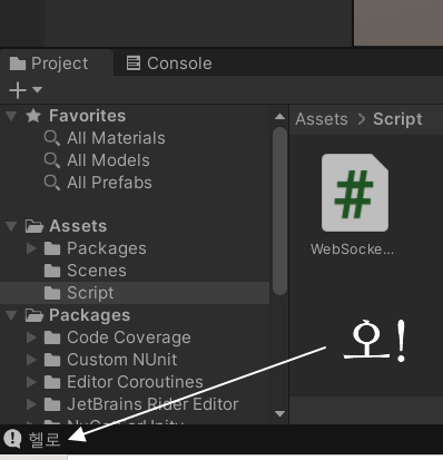 이제 유니티에서 웹소켓이 잘 작동하는지 확인해볼텐데요.